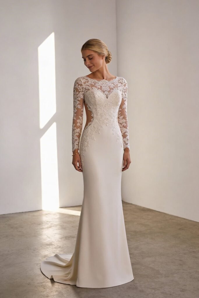 Styling ideas: Keep accessories minimal — a delicate chain necklace and barefoot sandals let the dress speak. Add a bridal cape for cooler weather.