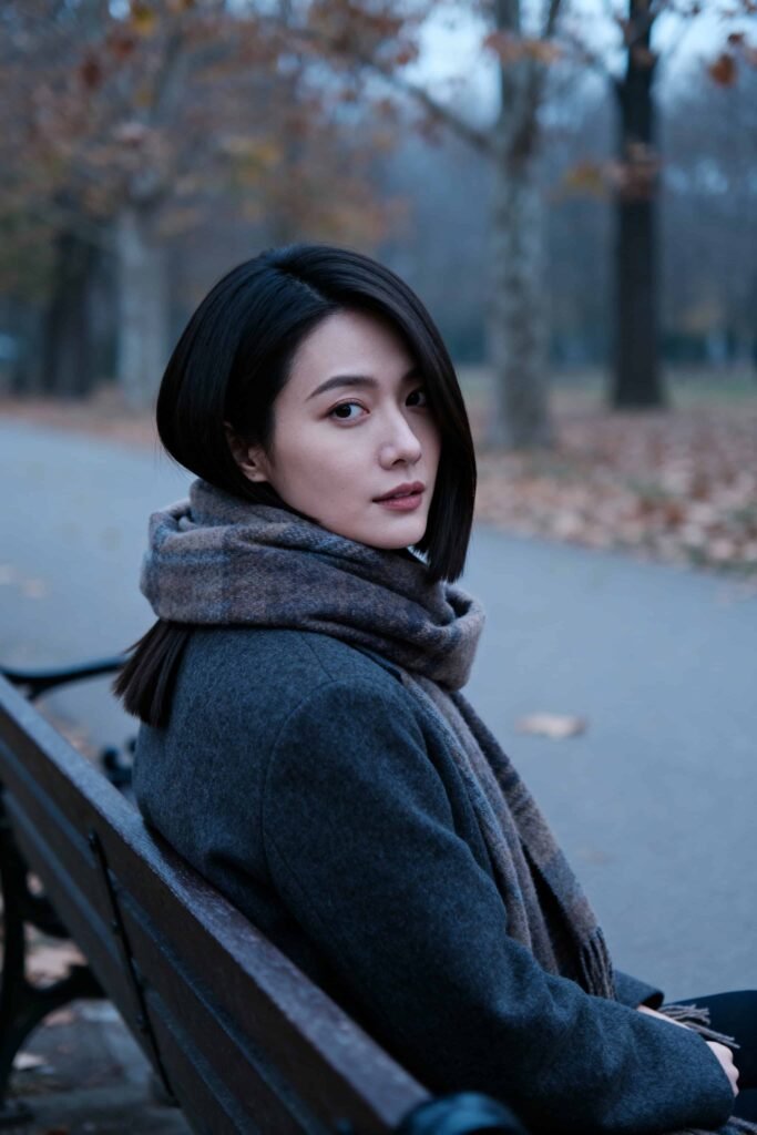 This creates a strong visual diagonal that draws the eye down, slimming the face. It’s a variation of the A-line but with more dramatic “swing” on one side.