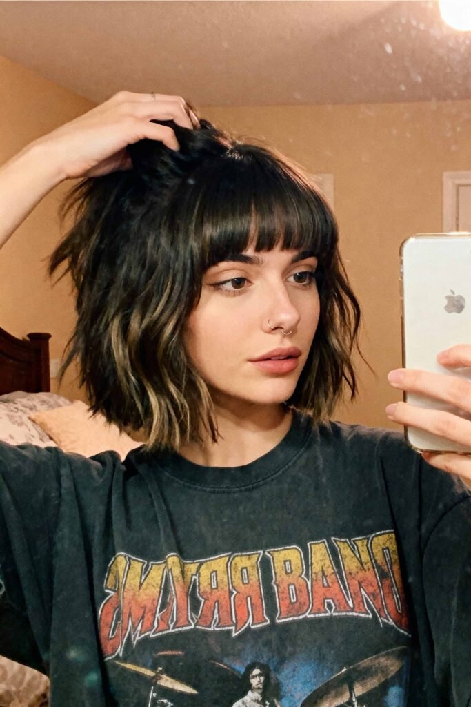 It is the most requested “add-on” to a lob. You can turn any of the other cuts on this list into this style just by adding the bangs.