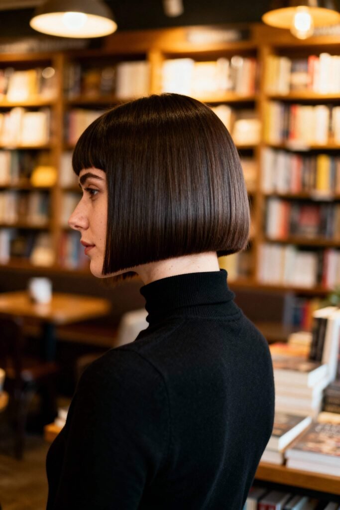 This isn’t just a cut; it’s a styling commitment. It requires a frizz-free, razor-sharp blunt cut and significant use of shine sprays and keratin treatments.