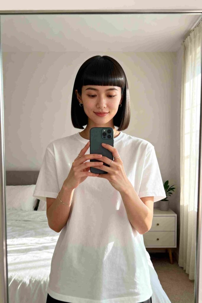 5. Blunt Shoulder-Length Cut – Sleek & Minimal