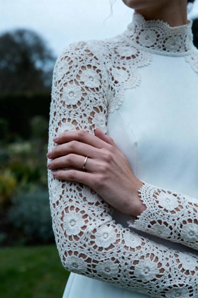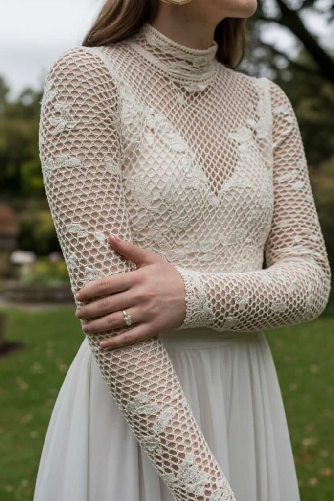 Lace is beautiful but fragile. Avoid wearing jewelry with claws or sharp edges (like prong-set bracelets) that can snag the fabric. If you do snag your dress, do not cut the thread! Use a “snag repair needle” to pull the thread back to the underside of the fabric.