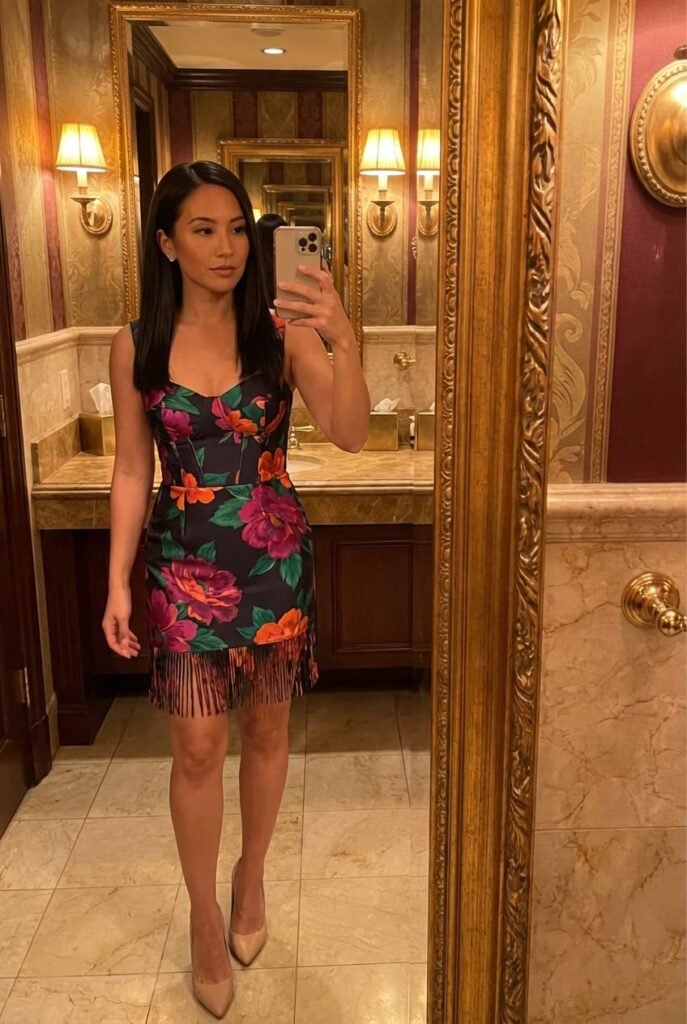 Bold florals, animal prints, or fringe accents. Sherri Hill’s 2026 cocktail collection is playful and high-impact. Why it ranks: Designer quality with exceptional fit. Inclusive sizing up to US 18. Fringe and bow details are peak 2026.