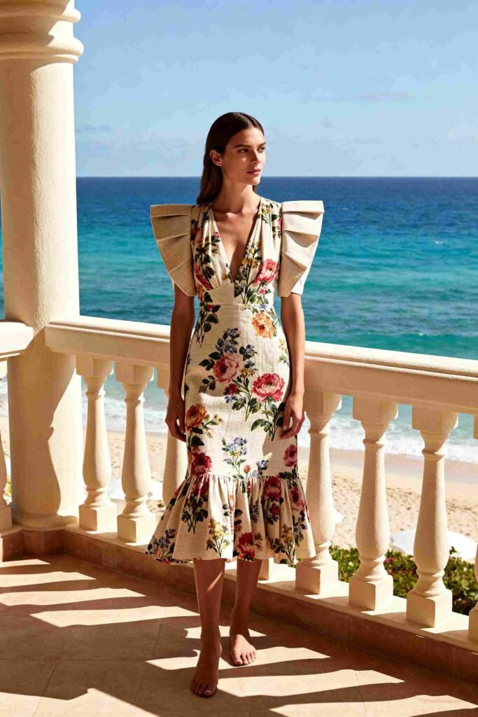 - Key Details: Zimmermann is famous for architectural sleeves, intricate proprietary prints, and high-quality linen-silk blends that hold their shape in humidity.