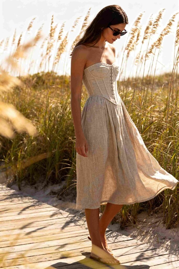 - Snapshot: Best for Eco-Conscious Chic, Corset-Style Midi, 100% Linen, Midi/Maxi, 0–12 (some extended), Dry Clean/Hand Wash.