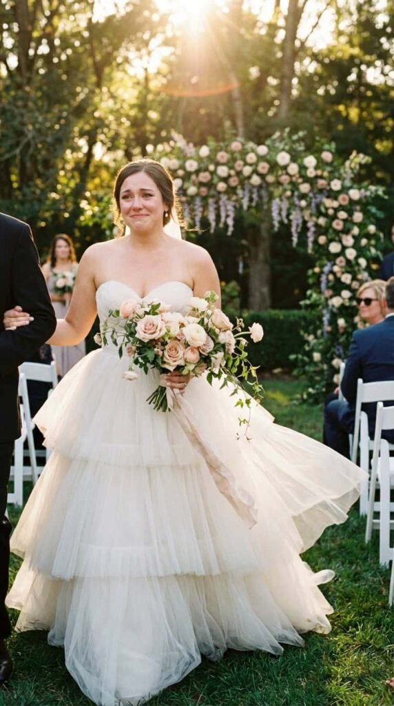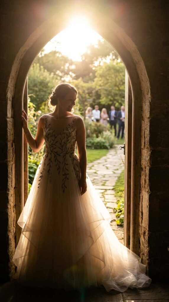 Don’t confuse heavy embellishment with whimsy. The most magical gowns I’ve seen are the lightest ones. Tulle, silk, organza, Chantilly lace. If it weighs you down, it’s not whimsical — it’s a costume.