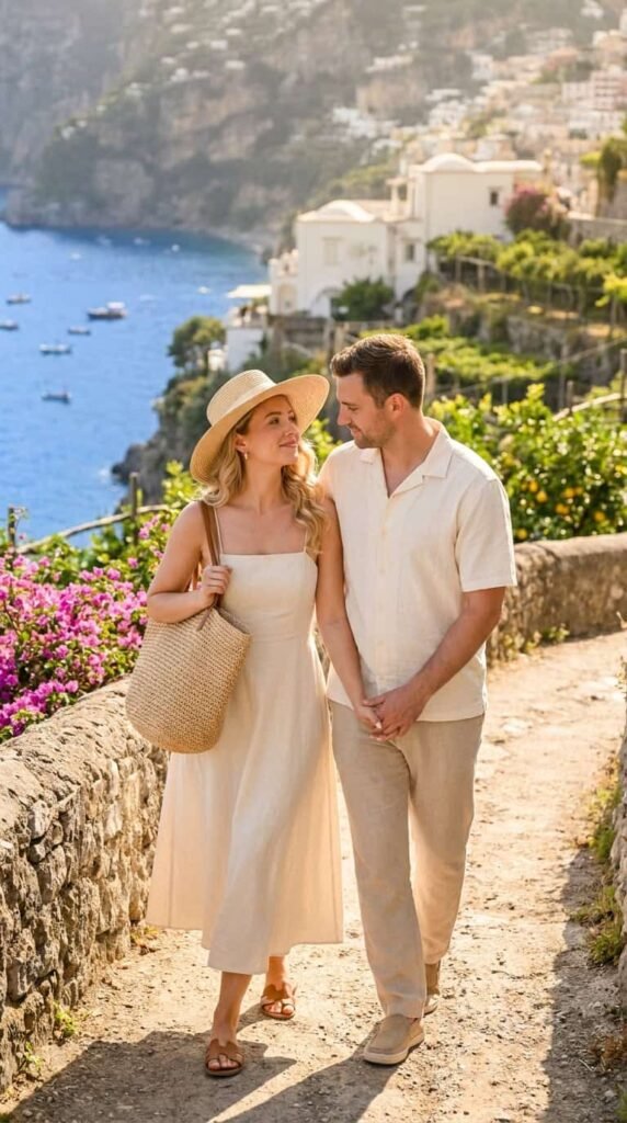Don’t pack a different outfit for every meal. Repeat outfits across your trip. Honeymoon photos look better when there’s a consistent style narrative — not 18 different aesthetics across 10 days.