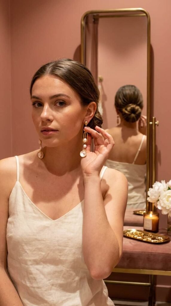 Around $58 for a versatile pair. Gold drop earrings with subtle pearls or shells. Wear with EVERY dinner outfit. Consistent gold jewelry across all your honeymoon photos creates visual cohesion.