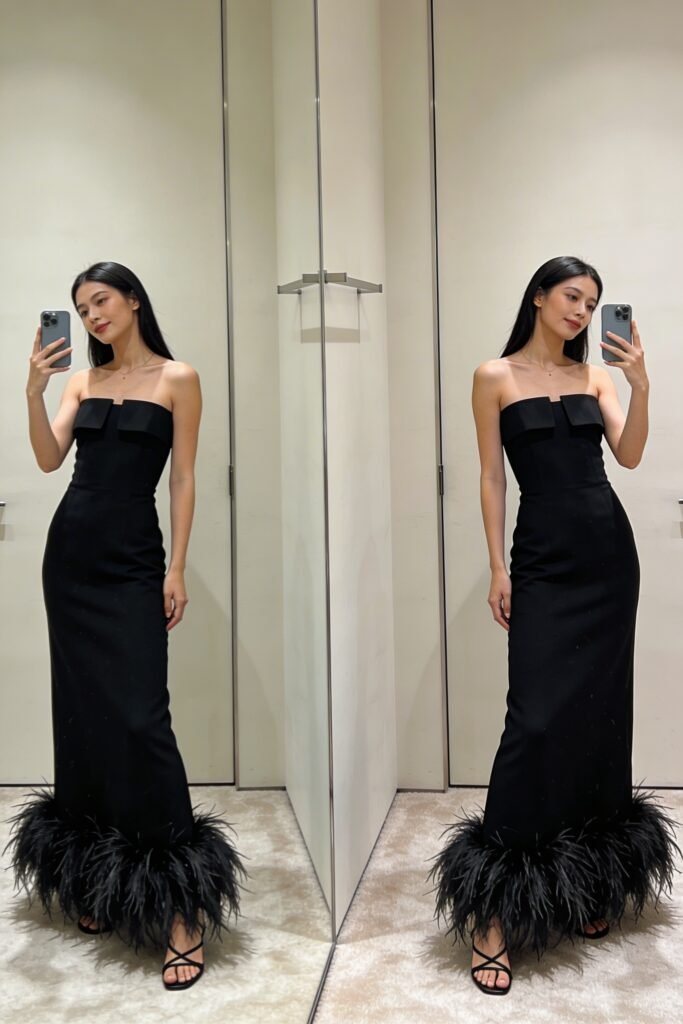 $420 at Nordstrom. This is the one. Ostrich feather trim at the hem, clean column silhouette, absolutely zero effort required to look like the best-dressed person in the room. An investment piece — but I’ve worn mine to three events already and each time felt like the first.