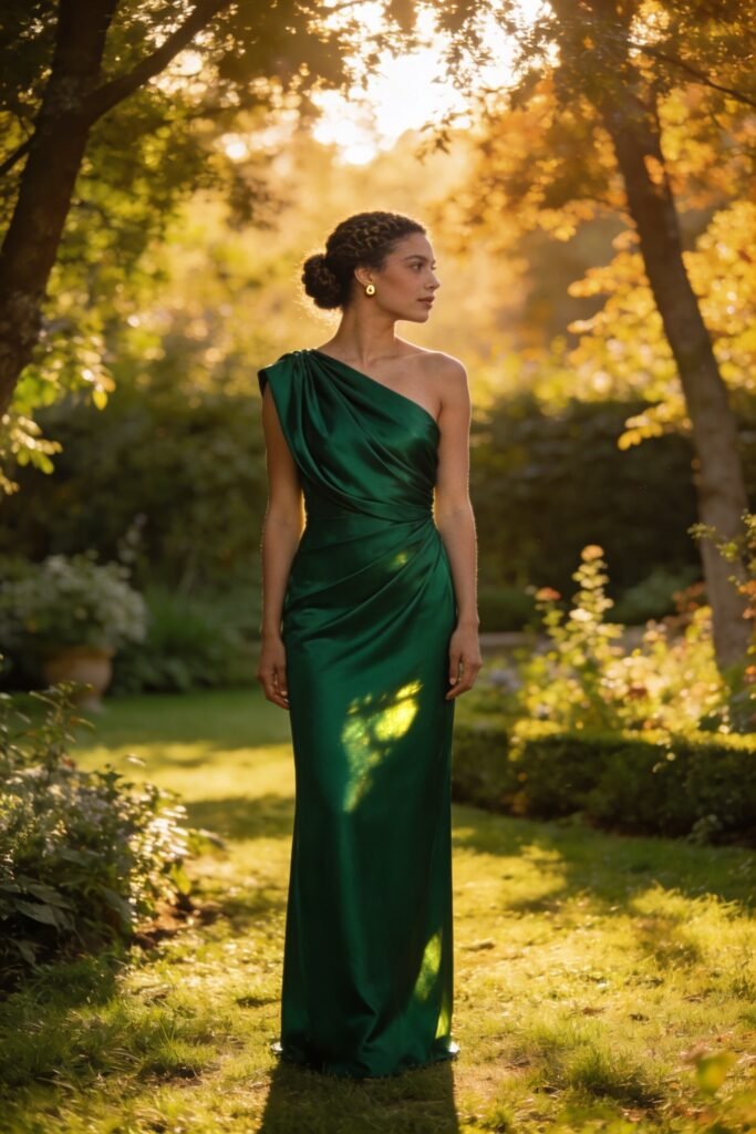 25. One-Shoulder Draped Gown in Emerald — Amsale