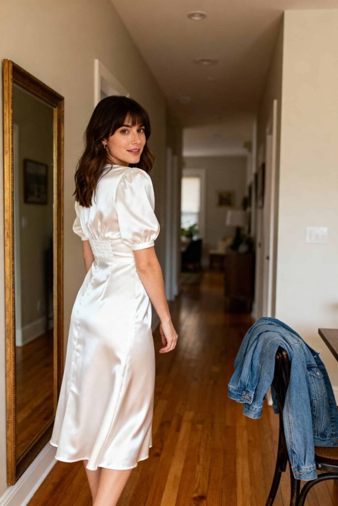 - Key Details: Cut on the bias, meaning it drapes over curves rather than clinging. It has a subtle sheen that looks luxurious in flash photography.