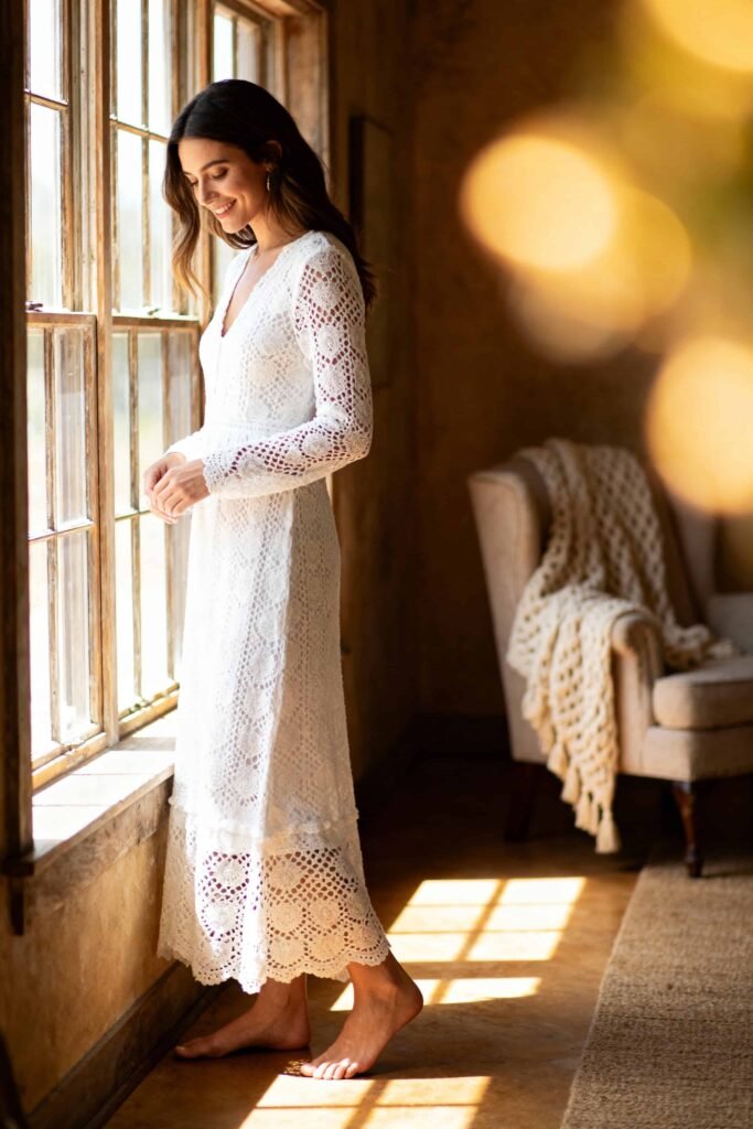 - Fabric Choice: Textured fabrics (lace, eyelet, pleats) usually look more expensive than cheap smooth polyester, which can shine weirdly in photos.