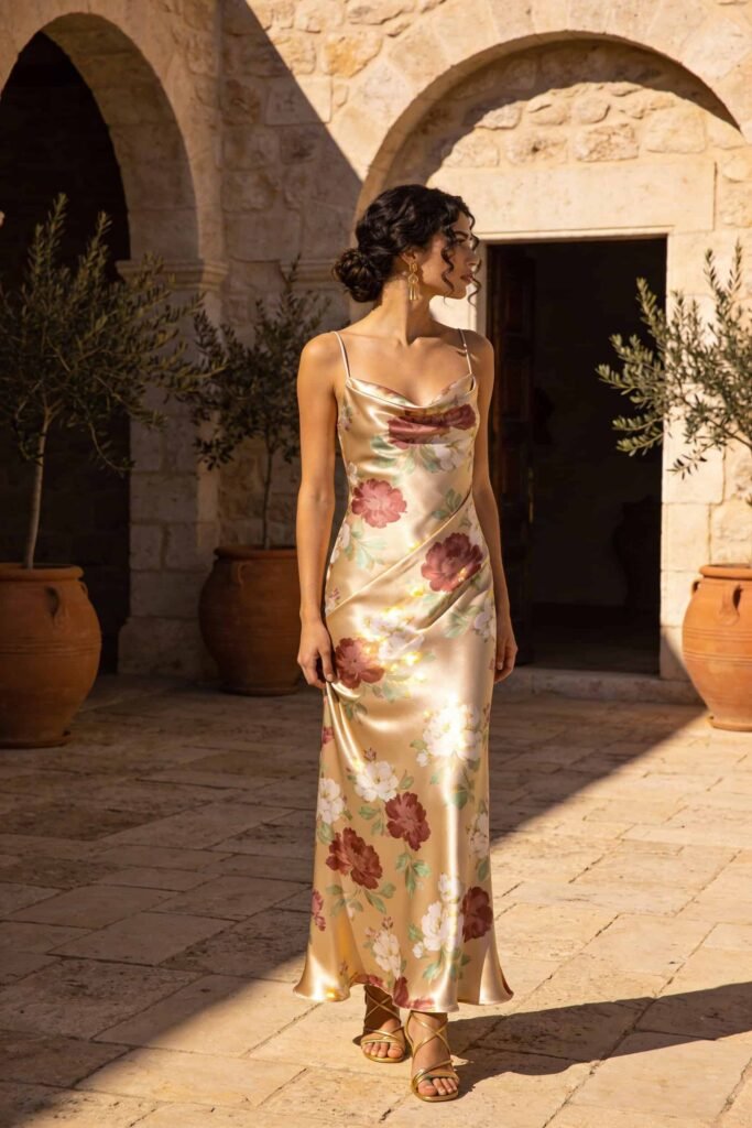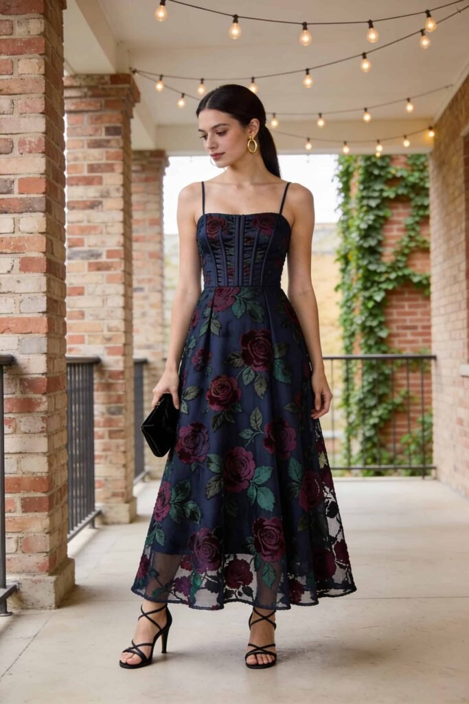 Style it with: Strappy metallic sandals, vintage-inspired drop earrings, and a silk scarf tied loosely around a clutch. For outdoor ceremonies, add a cashmere cardigan.