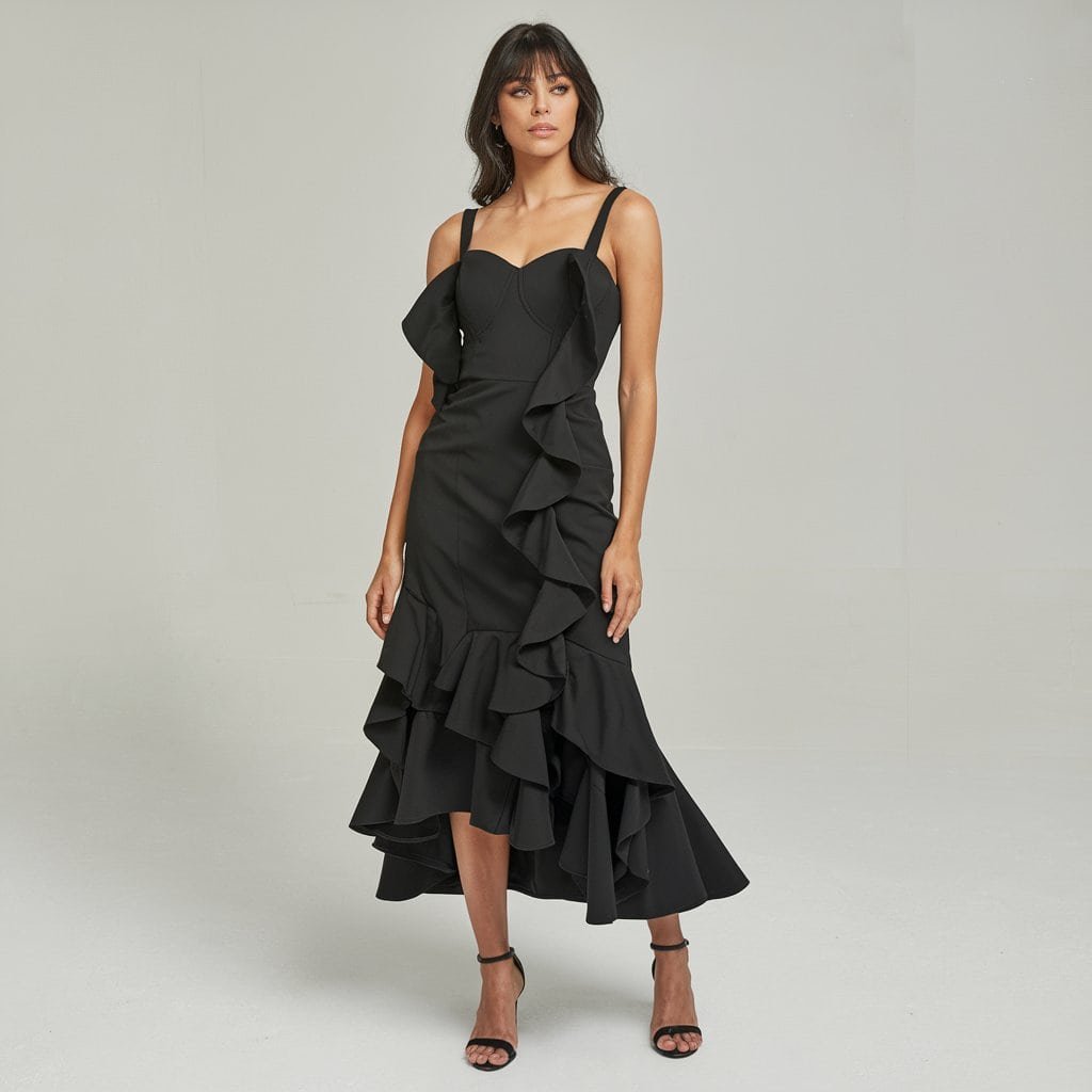Now that we’ve covered the main points for choosing your black guest dress, it’s time to check out ten stunning options to help amp up your wedding outfit. Each dress has something special to make you shine.