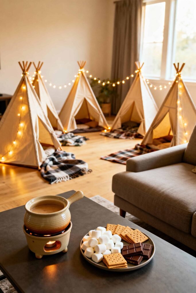 - What it is: A cozy campsite set up in your living room with individual tents or a pillow fort.
