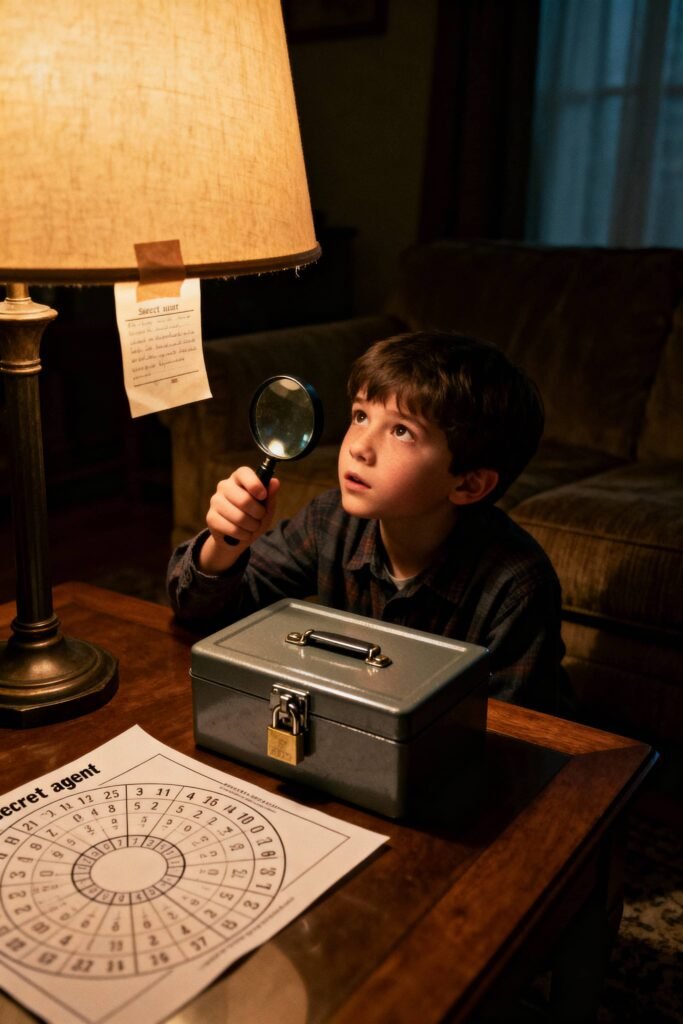 Transform a room into a “locked” bunker. You hide clues around the room that lead to a final code (to open a box with the cake or goody bags). You don’t need to invent the puzzles yourself; downloadable kits are widely available.