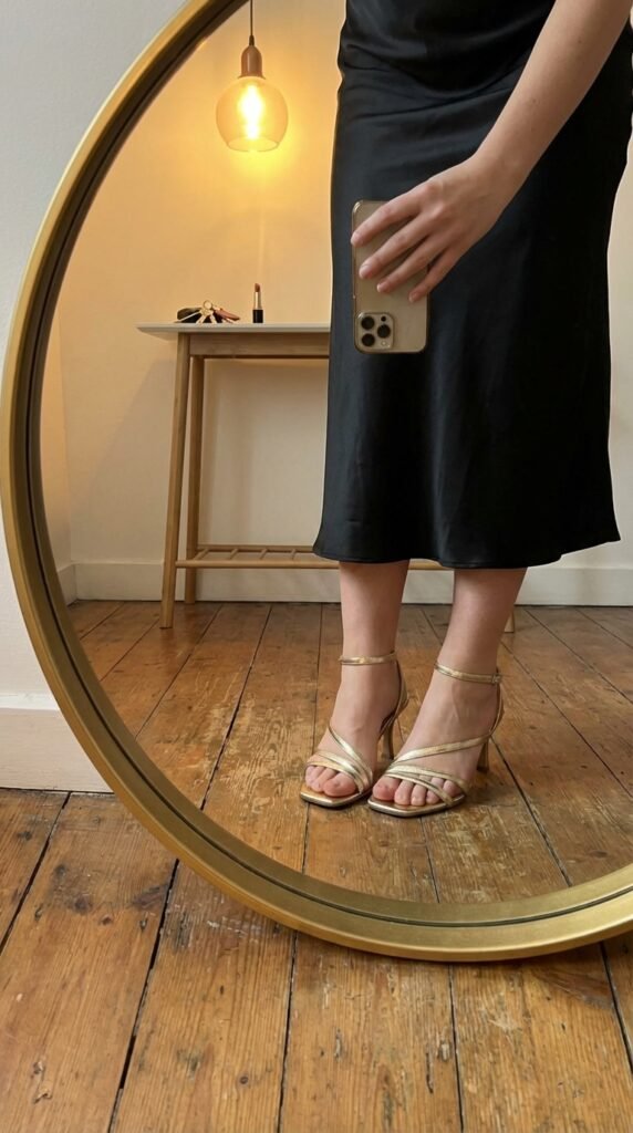 Around $218 at Reformation and I won’t pretend that’s cheap. But this is the dress that made three friends text me separately after dinner asking for the link. The bias-cut satin skims without clinging, and the cowl neckline flatters every chest size I’ve seen it on. Champagne catches candlelight like you hired a lighting director. I wear it with strappy gold heels — no necklace, no belt. The dress does everything. Only caveat: satin wrinkles if you sit in a car too long.