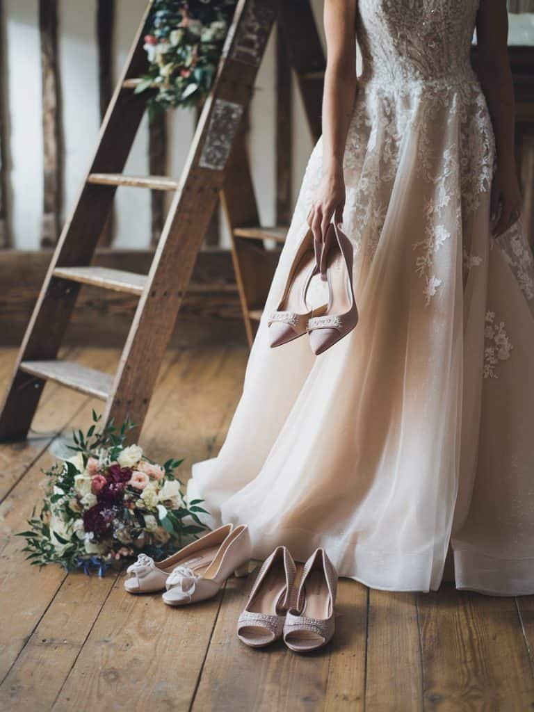- Heels vs. Flats: Heels can really elevate your bridal look, while pretty ballet flats or designer sandals can also be great, especially for outdoor weddings.