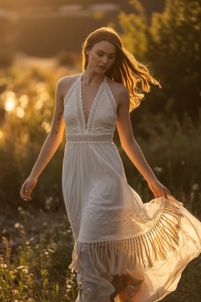 - Boho Aesthetic Authenticity (20%): Flowing silhouettes, lace details, romantic embellishments